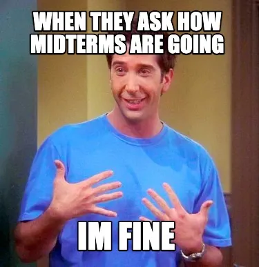 When they ask how midterms are going IM FINE Meme Template