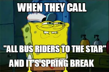 Create When they call and it's spring break "all bus riders to the star" Meme
