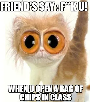 Create WHEN U OPEN A BAG OF CHIPS IN CLASS FRIEND'S SAY : F**K U! Meme