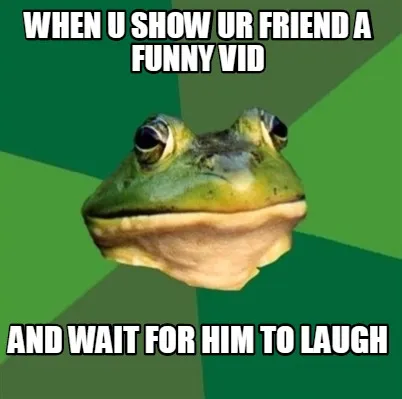 Make your own "WHEN U SHOW UR FRIEND A FUNNY VID AND WAIT FOR HIM TO LAUGH" meme with MemeCreator's free online meme generator. Add text, stickers, and drawings — then download or share. No watermark, no sign-up required.