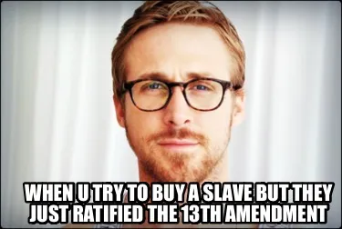 Create When u try to buy a slave but they just ratified the 13th amendment Meme
