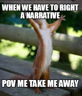 Create When we have to right a narrative Pov me take me away Meme
