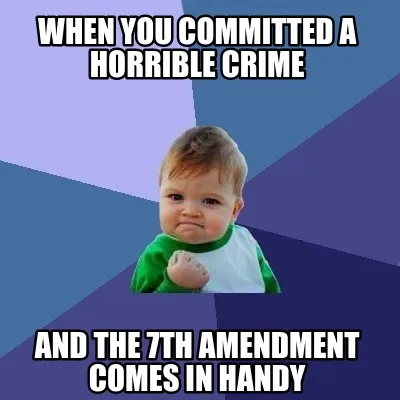 When you committed a horrible crime and the 7th amendment comes in handy Meme Template