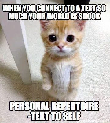 Funny When you connect to a text so much your world is shook Personal Repertoire -text Meme Template