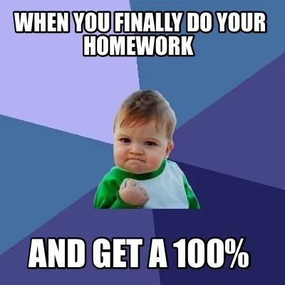 Make your own "When you finally do your homework And get a 100%" meme with MemeCreator's free online meme generator. Add text, stickers, and drawings — then download or share. No watermark, no sign-up required.