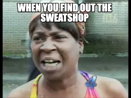 Make your own "When you find out the sweatshop" meme with MemeCreator's free online meme generator. Add text, stickers, and drawings — then download or share. No watermark, no sign-up required.