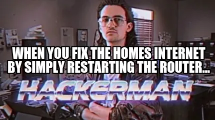 Create When you fix the homes Internet by simply restarting the router... Meme