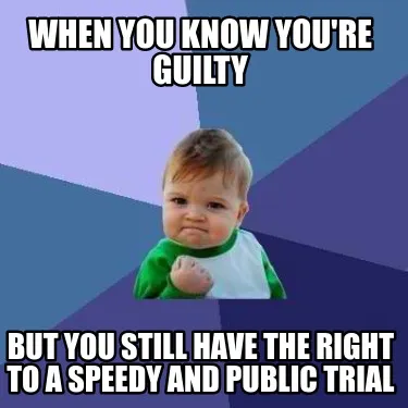 Create WHen you know you're guilty but you still have the right to a speedy and public Meme