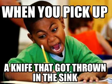 Create When you pick up A knife that got thrown in the sink Meme