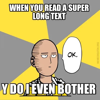 Create When you read a super long text Y do i even bother Meme
