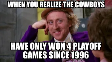 Create WHEN YOU REALIZE THE COWBOYS HAVE ONLY WON 4 PLAYOFF GAMES SINCE 1996 Meme