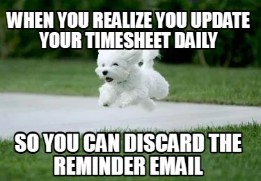 Create When you realize you update your timesheet daily So you can discard the reminder Meme