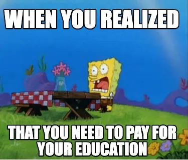 Make your own "When you realized that you need to pay for your education" meme with MemeCreator's free online meme generator. Add text, stickers, and drawings — then download or share. No watermark, no sign-up required.