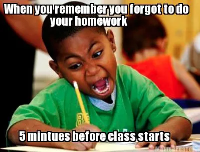 Create Funny When you remember you forgot to do 5 mintues before class starts your homework Meme