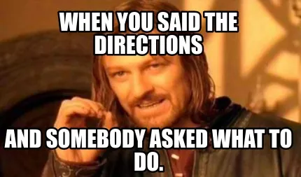 Create When you said the directions and somebody asked what to do. Meme