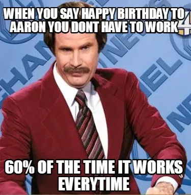 Create When you say happy birthday to Aaron you dont have to work 60% of the time it wo Meme