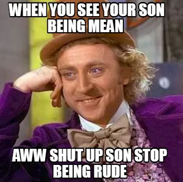 Create When you see your son being mean aww shut up son stop being rude Meme
