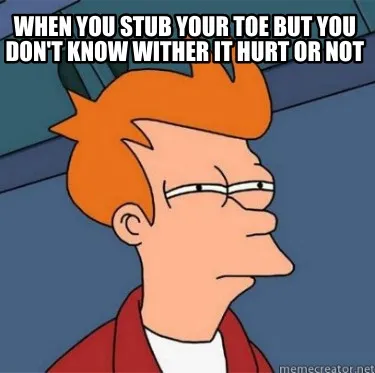 Create WHEN YOU STUB YOUR TOE BUT YOU DON'T KNOW wither it hurt or not Meme