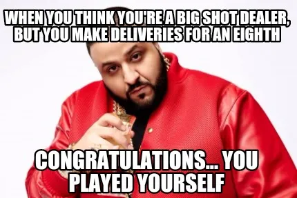 Create When you think you're a big shot dealer, but you make deliveries for an eighth C Meme