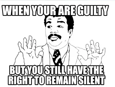 Make your own "When your are guilty but you still have the right to remain silent" meme with MemeCreator's free online meme generator. Add text, stickers, and drawings — then download or share. No watermark, no sign-up required.
