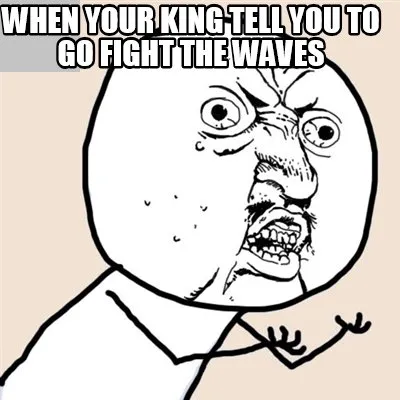Create When your king tell you to go fight the waves Meme