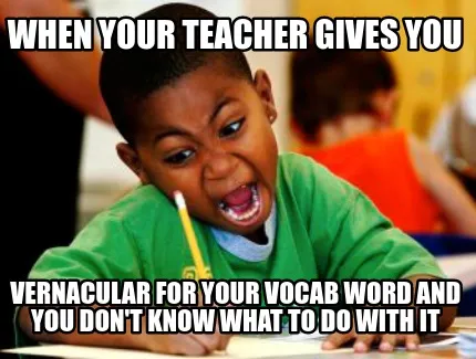 Create When your teacher gives you vernacular for your vocab word and you don't know w Meme