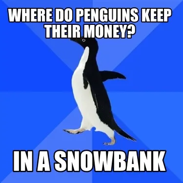 Create Where do penguins keep their money? in a snowbank Meme