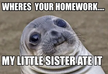 Create Wheres your homework.... My little sister ate it Meme