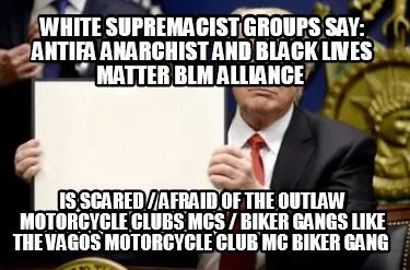 Create Funny White Supremacist Groups say: Antifa Anarchist and Black Lives Matter BLM Allian Meme