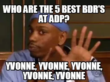 Create Who are the 5 best BDR's at ADP? Yvonne, Yvonne, Yvonne, Yvonne, Yvonne Meme