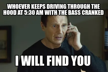 Create Funny Whoever keeps driving through the hood at 5:30 am with the bass cranked I will f Meme