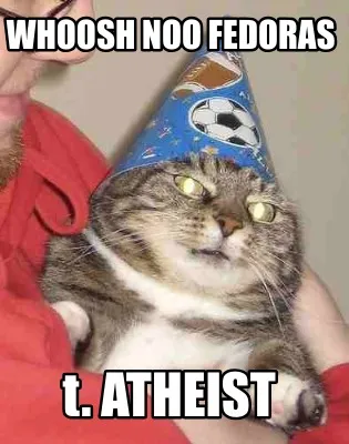 Create Funny whoosh noo fedoras t. ATHEIST Meme