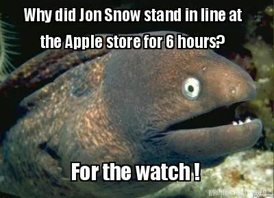 Create Funny Why did Jon Snow stand in line at the Apple store for 6 hours? For the watch ! Meme