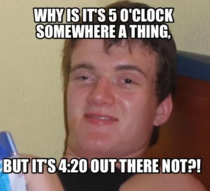 Create Why is it's 5 o'clock somewhere a thing, But it's 4:20 out there not?! Meme
