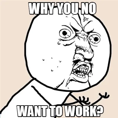 Funny Why you no want to work? Meme Template