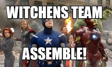 Make your own "Funny Witchens Team Assemble!" meme with MemeCreator's free online meme generator. Add text, stickers, and drawings — then download or share. No watermark, no sign-up required.