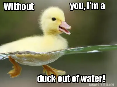 Make your own "Without you, I'm a duck out of water!" meme with MemeCreator's free online meme generator. Add text, stickers, and drawings — then download or share. No watermark, no sign-up required.