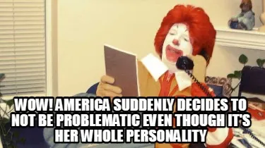Create WOW! America suddenly decides to not be problematic even though it's her whole Meme