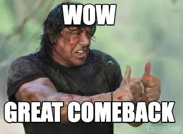 Make your own "Funny wOw Great Comeback" meme with MemeCreator's free online meme generator. Add text, stickers, and drawings — then download or share. No watermark, no sign-up required.