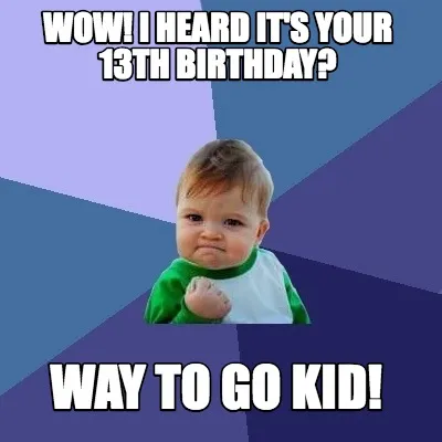 Funny Wow! I heard it's your 13th birthday? Way to go kid! Meme Template