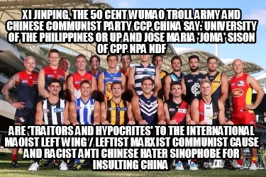 Make your own "Xi Jinping, the 50 Cent Wumao Troll Army and Chinese Communist Party CCP China s" meme with MemeCreator's free online meme generator. Add text, stickers, and drawings — then download or share. No watermark, no sign-up required.