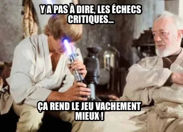 Make your own "Y a pas à dire, les échecs critiques… Ça rend le jeu vachement mieux !" meme with MemeCreator's free online meme generator. Add text, stickers, and drawings — then download or share. No watermark, no sign-up required.