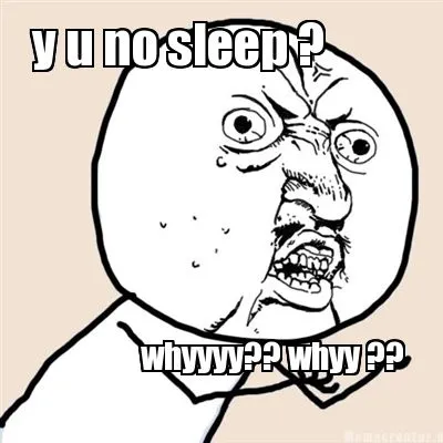 Create Y u no sleep ? whyyyy?? whyy ?? Meme