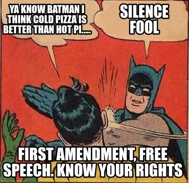 Funny ya know batman I think cold pizza is better than hot pi..... Silence fool First Meme Template