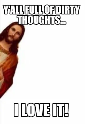 Make your own "Funny Y'all full of dirty thoughts... I love it!" meme with MemeCreator's free online meme generator. Add text, stickers, and drawings — then download or share. No watermark, no sign-up required.
