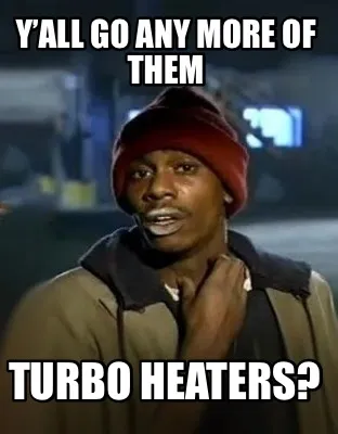 Create Y’all go any more of them Turbo heaters? Meme