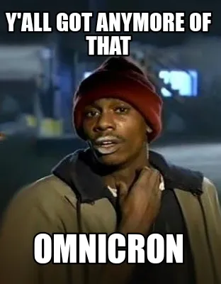 Make your own "Y'all Got Anymore of That Omnicron" meme with MemeCreator's free online meme generator. Add text, stickers, and drawings — then download or share. No watermark, no sign-up required.