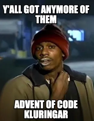 Y'all got anymore of them Advent of code kluringar Meme Template