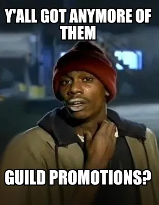 Create Y'all got anymore of them Guild Promotions? Meme