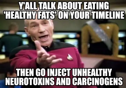 Create Funny Y'all talk about eating 'healthy fats' on your timeline Then go inject unhealthy Meme